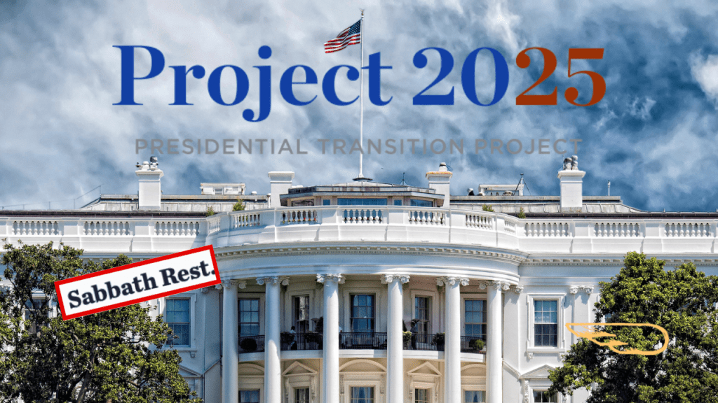 Project 2025 has a 180 day “playbook” labeled “Mandate for Leadership: The Conservative Promise” where they lay out the exact policy that will be carried out on “Day One” of the new elected President’s office. On page 589 of this playbook, there is an entire section dedicated to “Sabbath Rest.”